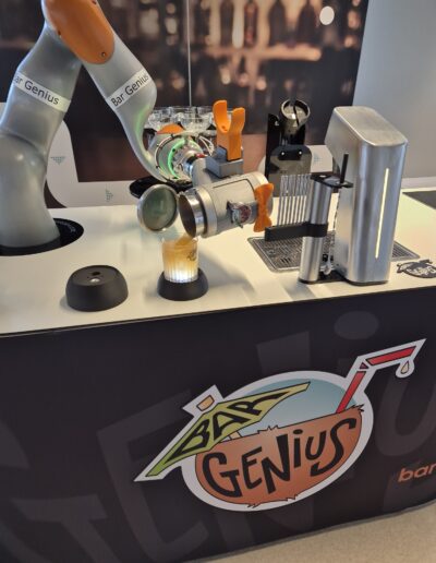 • Innovatief Design: Laat een geavanceerde robot de cocktails shaken en presenteren als blikvanger van jouw event.